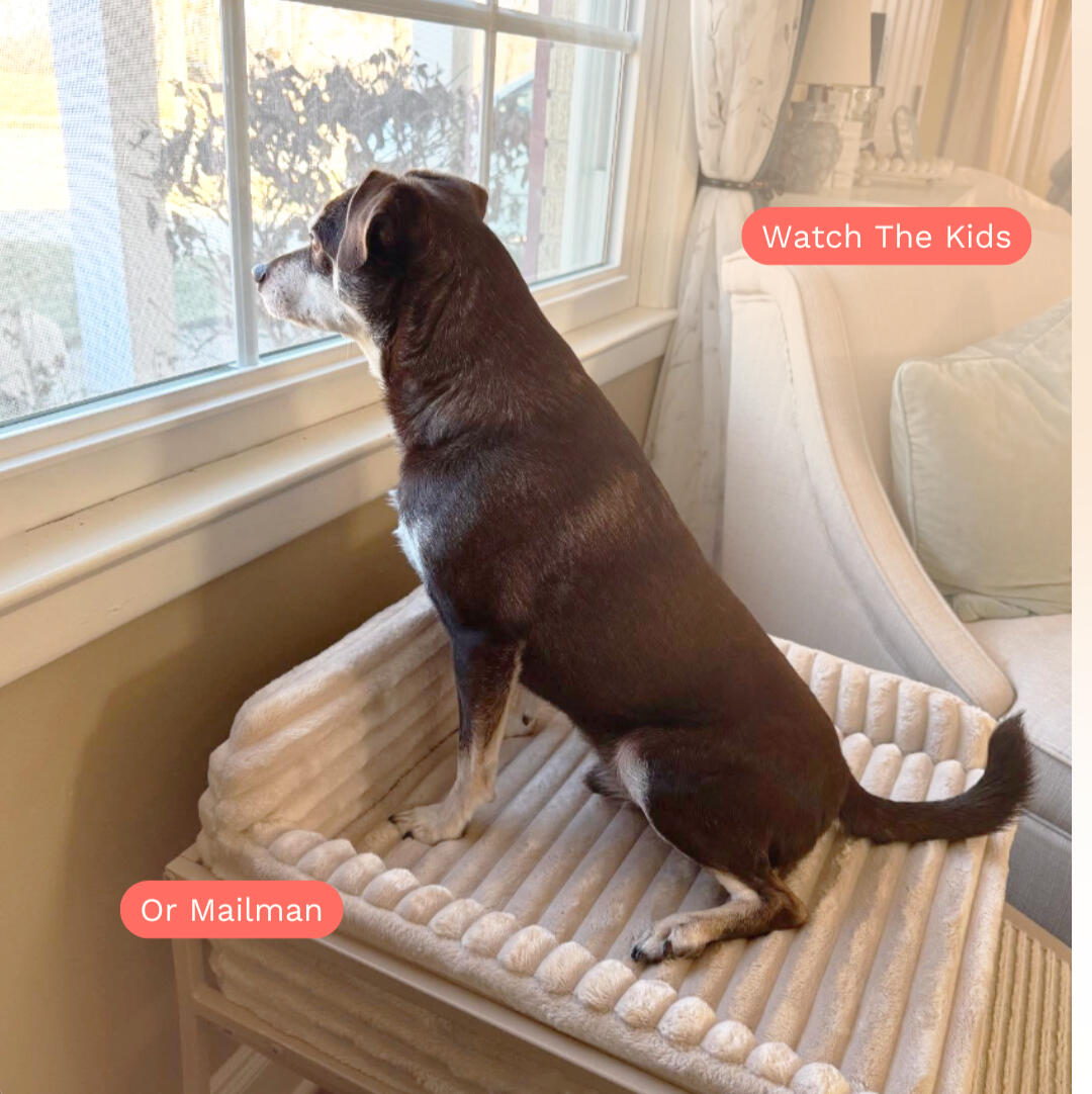 SeatMate provides the perfect lookout spot for dogs under 35 lbs, designed for those lively, lovable pups who enjoy keeping an eye on the kids and the mailman.